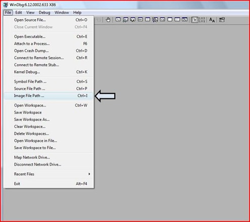 - Now, on the WinDbg’s window AGAIN, click File –-> click Image File Path…